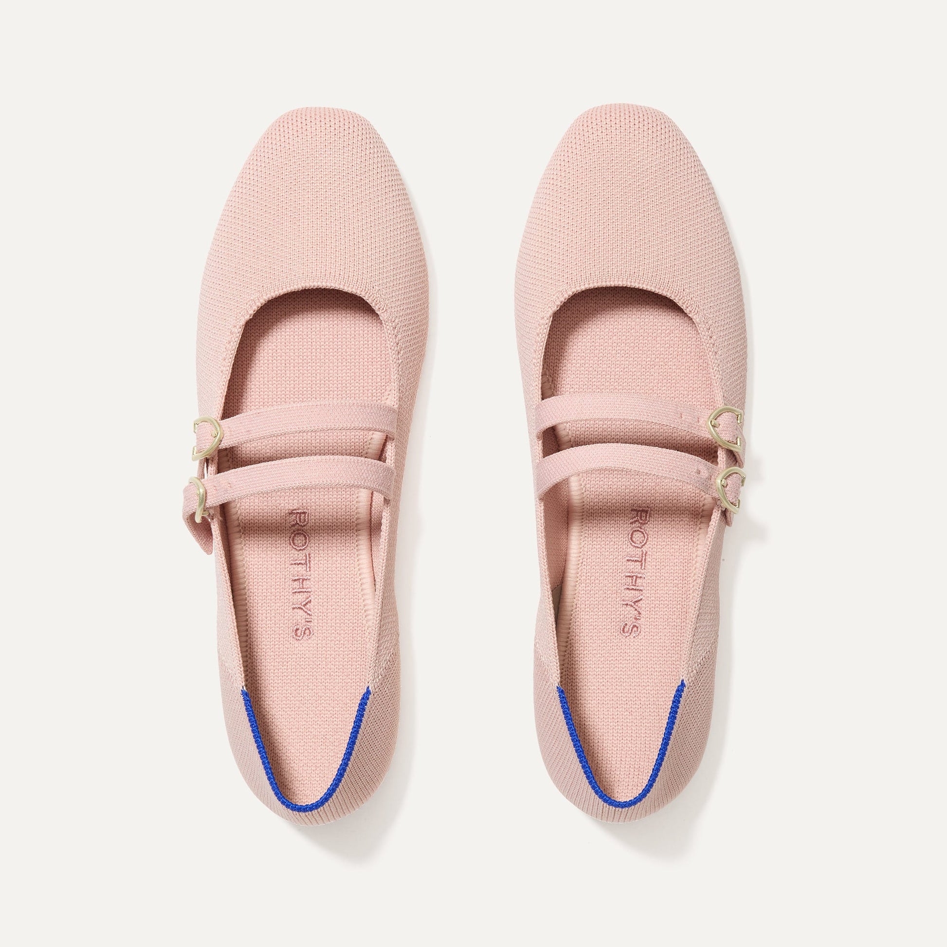 - Comfortable insoles in pastel pink and durable tan rubber outsoles.