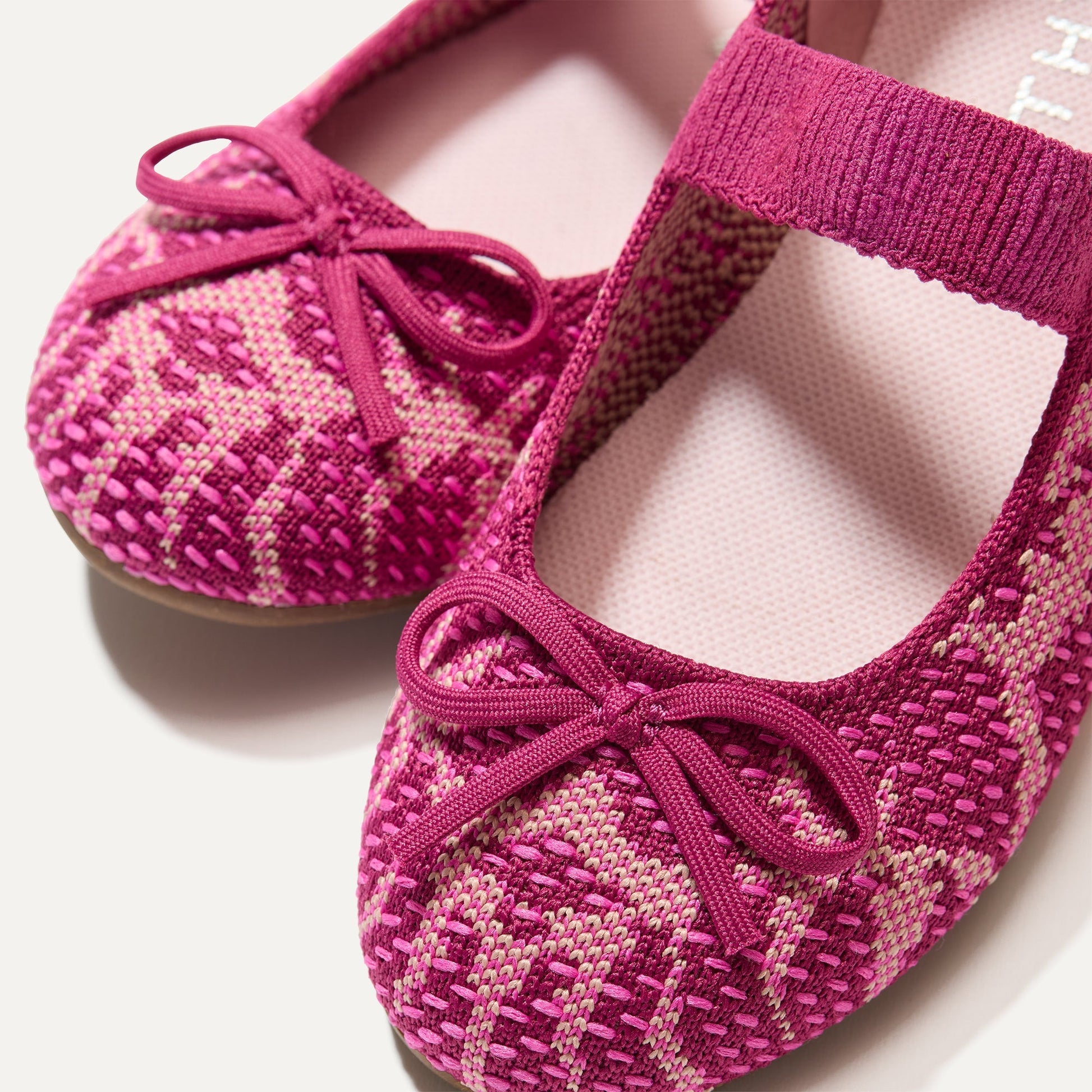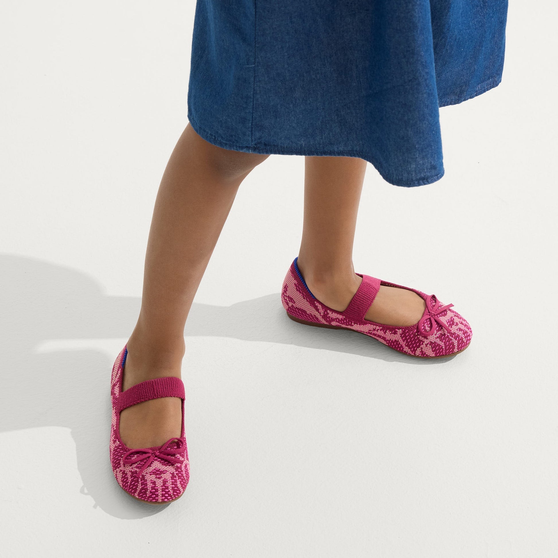 - A fixed bow in magenta on the vamp adds a playful detail.