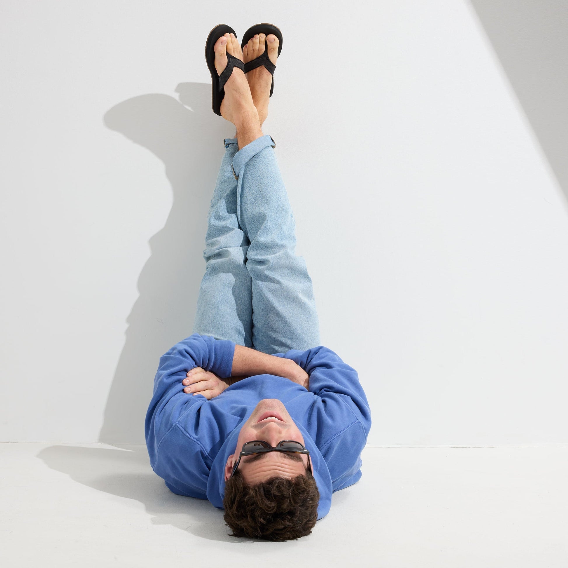 - Features a lightweight, comfortable footbed in black and a rubber outsole.