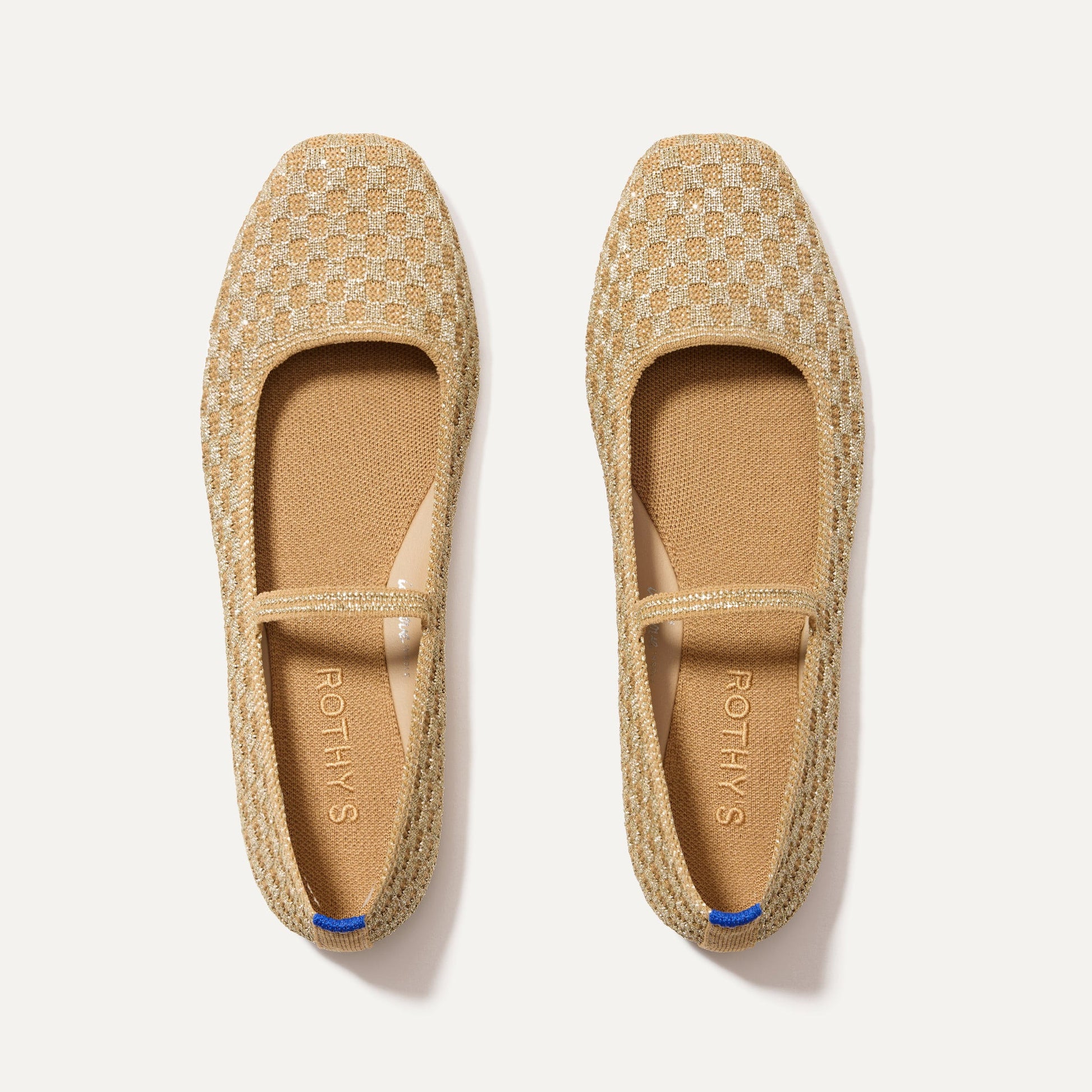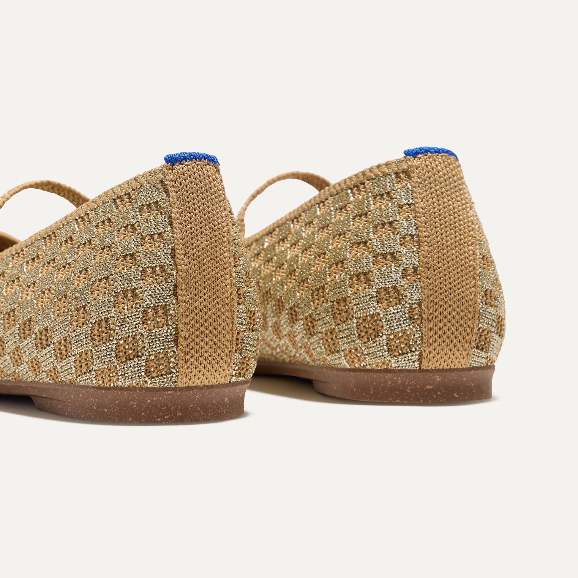 - Soft, flexible upper knit with a basketweave pattern in a shimmery gold metallic.