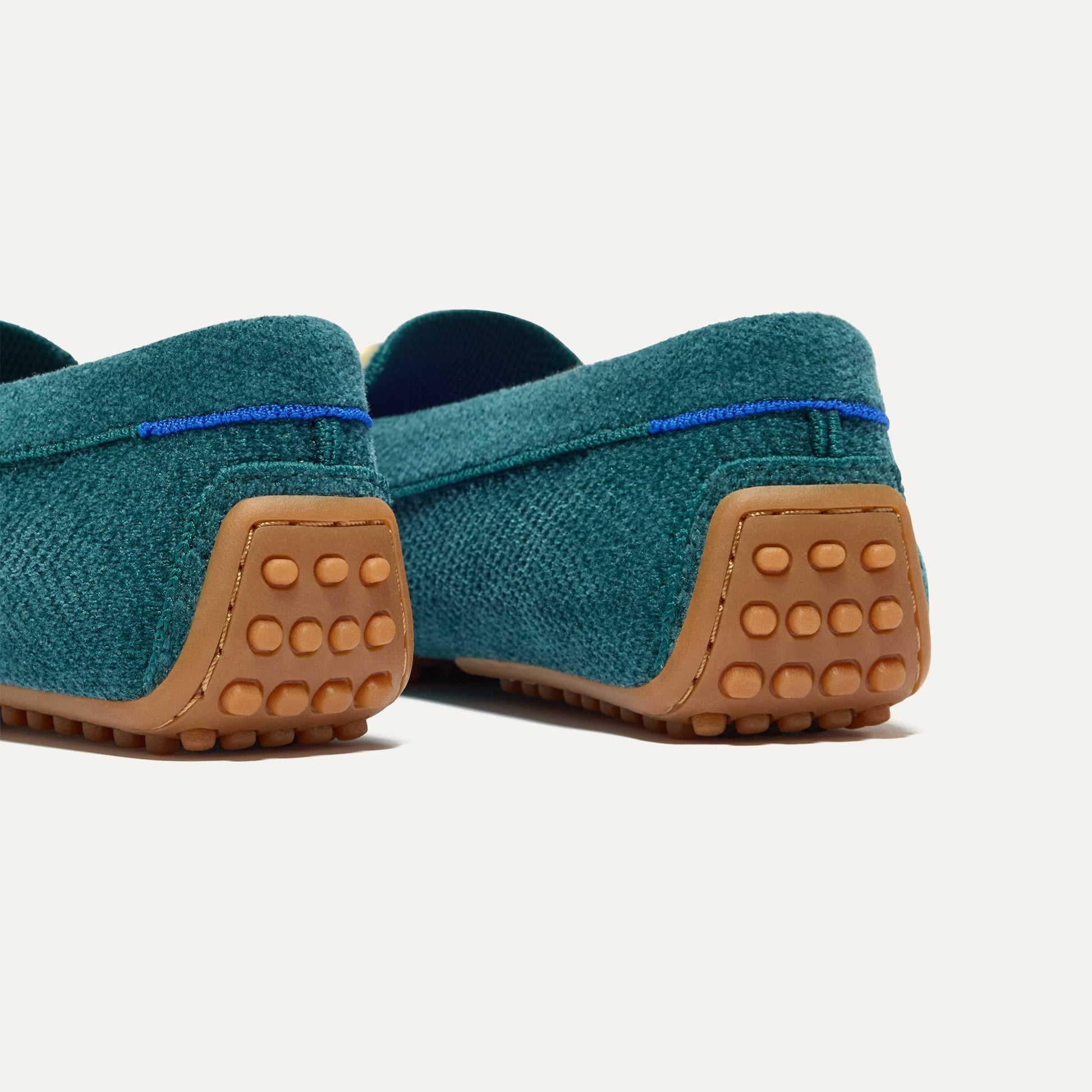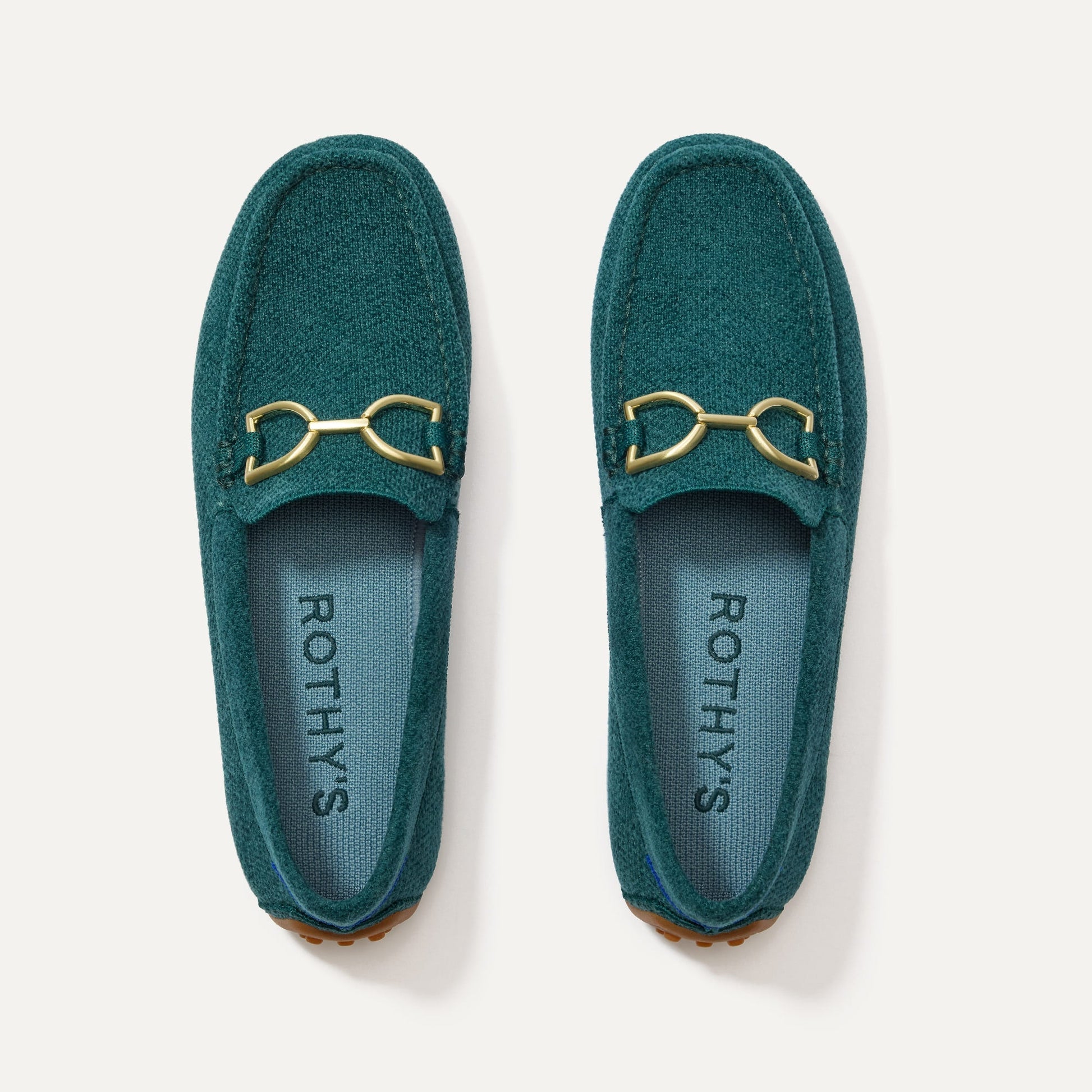 - Soft, flexible upper in jade green with a gold hardware signet bit on the vamp.