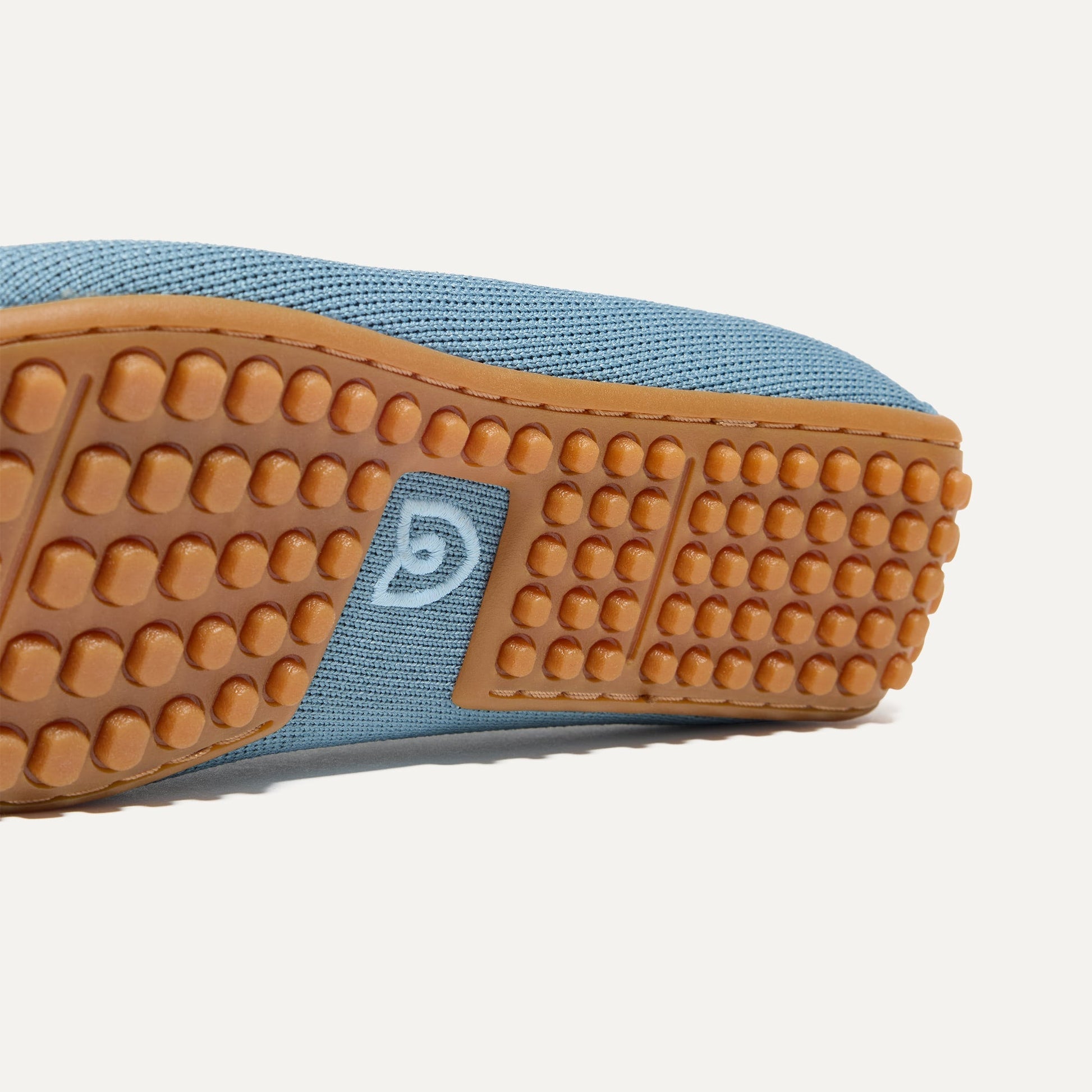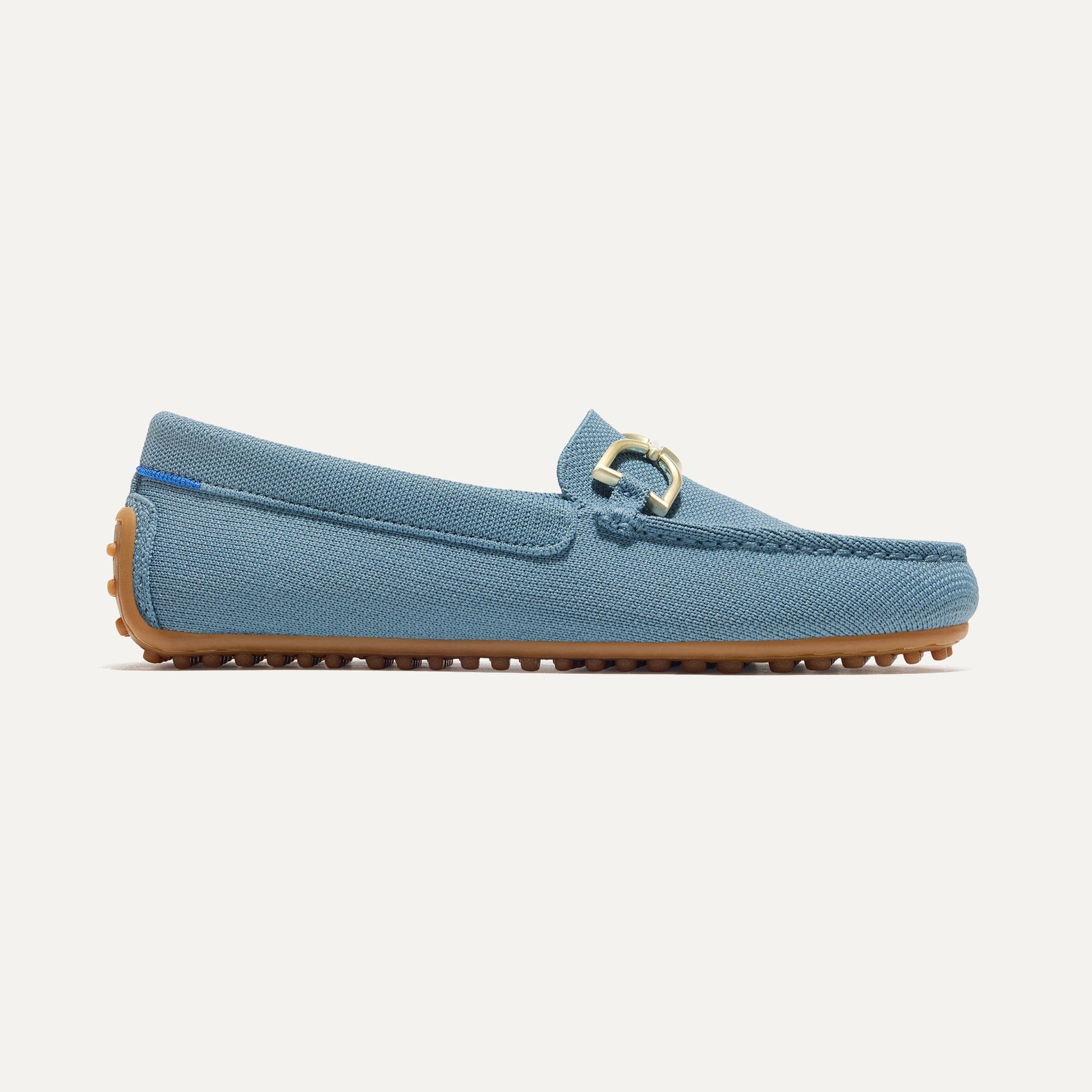 - Soft, flexible upper in sky blue with a gold hardware signet bit on the vamp.