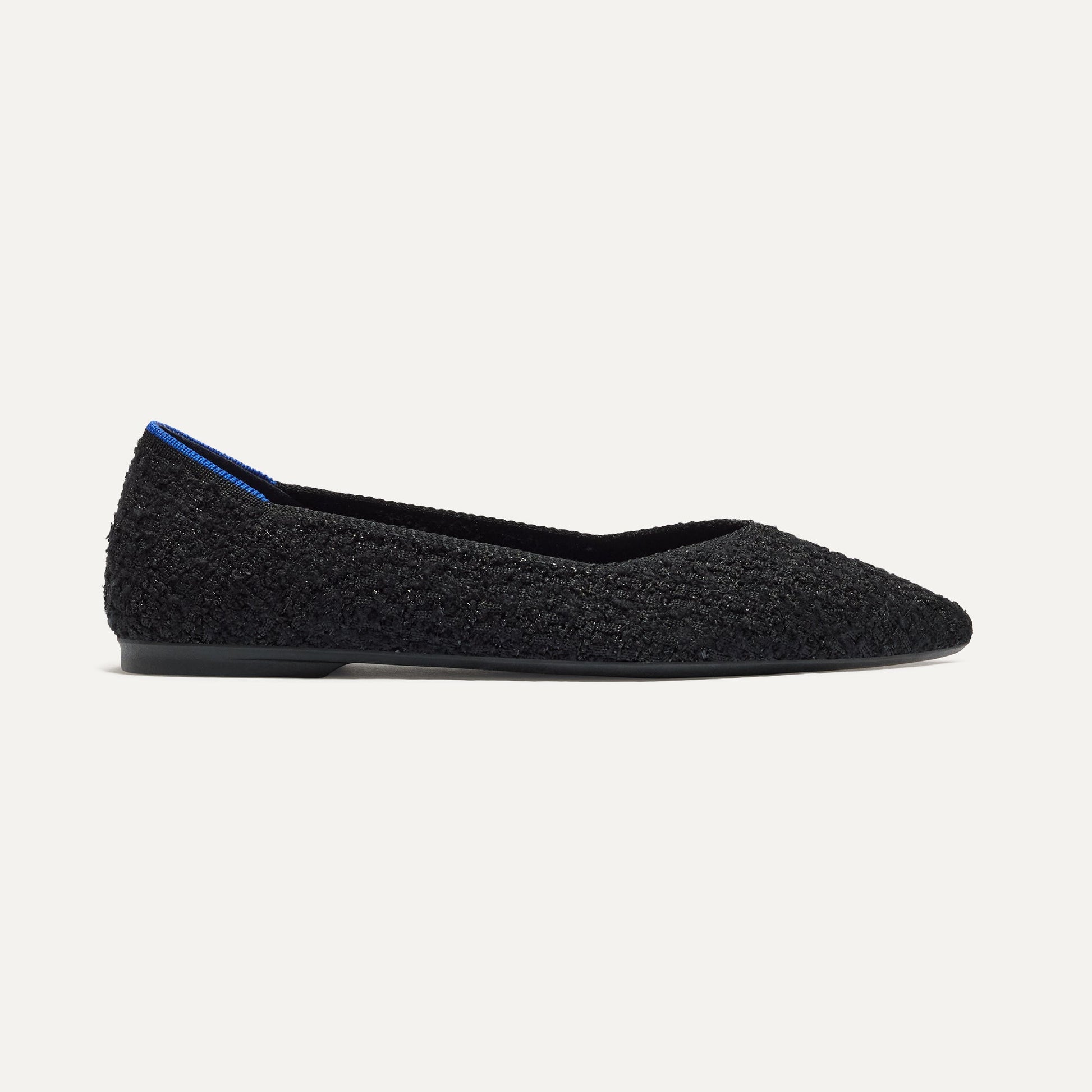 - Premium knit upper in a shimmery black bouclé with a smooth, refined shape.