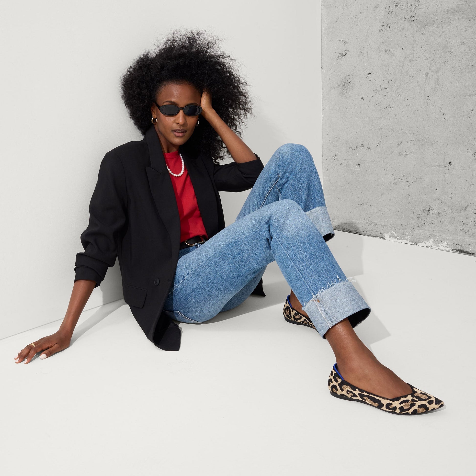 - Premium knit upper in a black and cream leopard print with a smooth, refined shape.