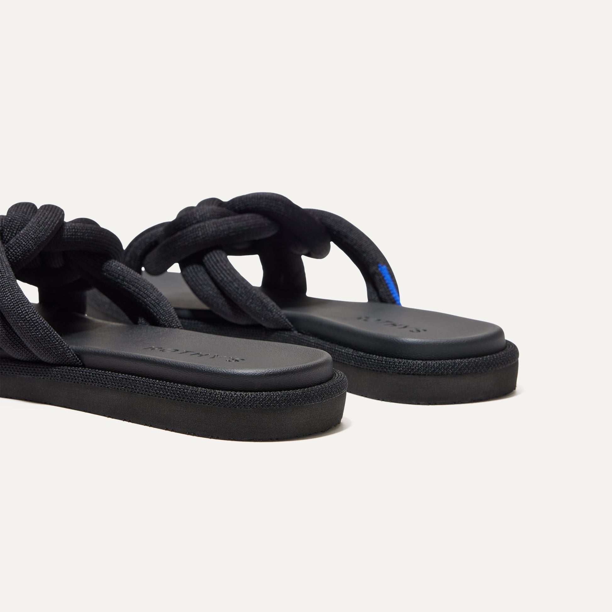 - Cushioned, interwoven straps in black for a luxe style you can wear all day.